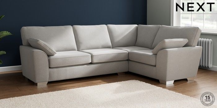 7.2.10 Stamford Large Corner Sofa - Right Hand Natural Mix Light Grey Large Square Angle - Chrome Metal | Made Click here to use our website with more accessibility support, for example screen readers