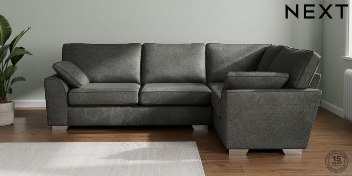 7.2.10 Stamford Large Corner Sofa - Right Hand Plush Chenille Dark Grey Large Square Angle - Chrome Metal | Made Click here to use our website with more accessibility support, for example screen readers