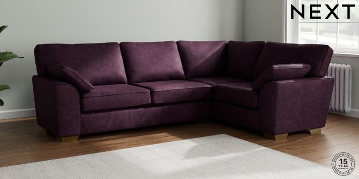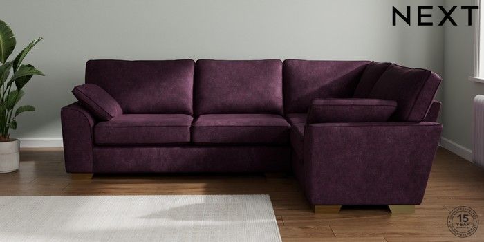 7.2.10 Stamford Large Corner Sofa - Right Hand Plush Chenille Dark Plum Purple Large Square Angle - Brushed Brass | Made Click here to use our website with more accessibility support, for example screen readers