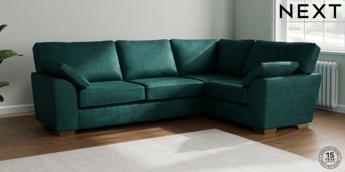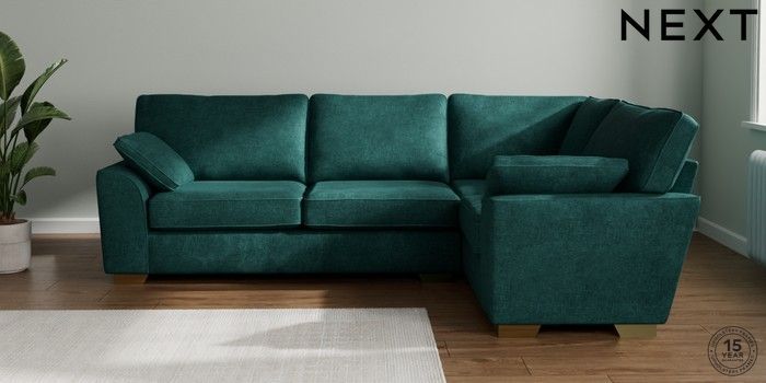 7.2.10 Stamford Large Corner Sofa - Right Hand Plush Chenille Dark Teal Green Large Square Angle - Brushed Brass | Made Click here to use our website with more accessibility support, for example screen readers