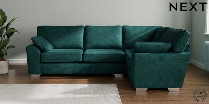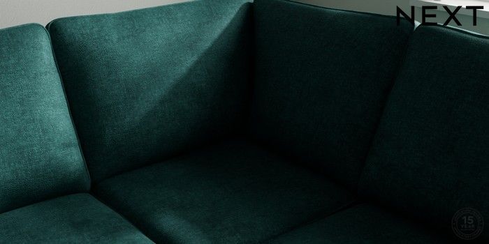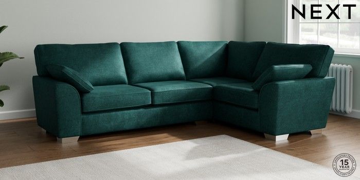 7.2.10 Stamford Large Corner Sofa - Right Hand Plush Chenille Dark Teal Green Large Square Angle - Chrome Metal | Made Click here to use our website with more accessibility support, for example screen readers