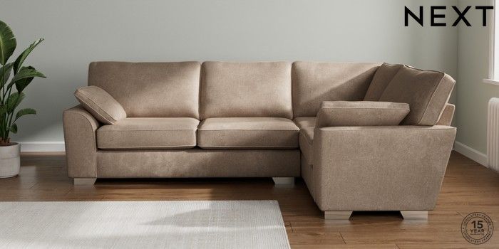 7.2.10 Stamford Large Corner Sofa - Right Hand Plush Chenille Mid Natural Large Square Angle - Chrome Metal | Made Click here to use our website with more accessibility support, for example screen readers