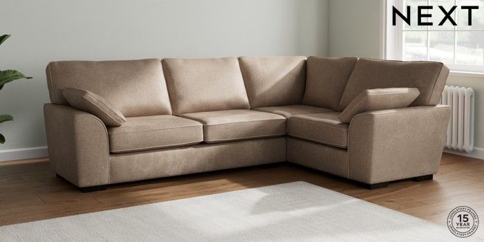 7.2.10 Stamford Large Corner Sofa - Right Hand Plush Chenille Mid Natural Large Square Angle - Dark | Made Click here to use our website with more accessibility support, for example screen readers