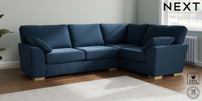 7.2.10 Stamford Large Corner Sofa - Right Hand Plush Velvet Easy Clean Airforce Blue Large Square Angle - Light | Made Click here to use our website with more accessibility support, for example screen readers