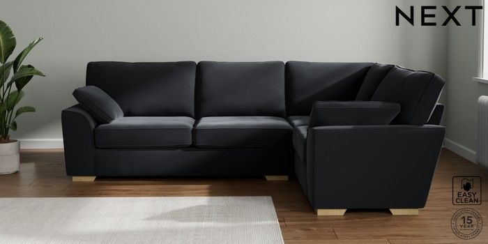 7.2.10 Stamford Large Corner Sofa - Right Hand Plush Velvet Easy Clean Charcoal Grey Large Square Angle - Light | Made Click here to use our website with more accessibility support, for example screen readers