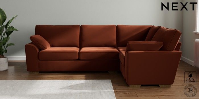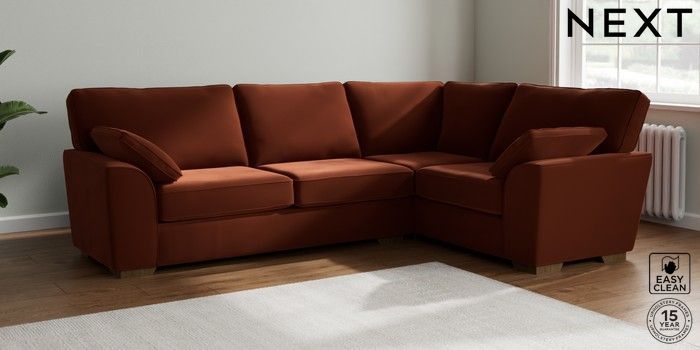7.2.10 Stamford Large Corner Sofa - Right Hand Plush Velvet Easy Clean Ginger Orange Large Square Angle - Mid | Made Click here to use our website with more accessibility support, for example screen readers