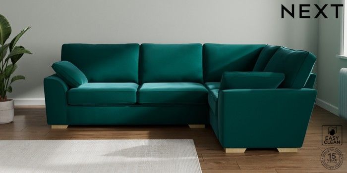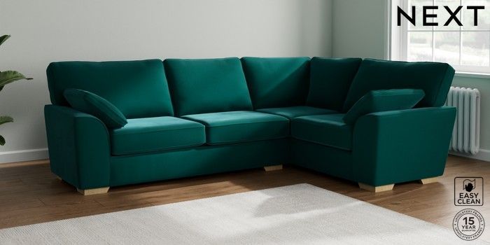 7.2.10 Stamford Large Corner Sofa - Right Hand Plush Velvet Easy Clean Juniper Green Large Square Angle - Light | Made Click here to use our website with more accessibility support, for example screen readers