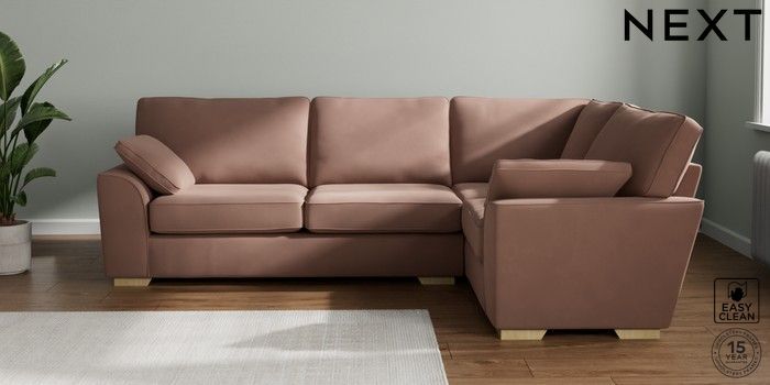 7.2.10 Stamford Large Corner Sofa - Right Hand Plush Velvet Easy Clean Mid Natural Large Square Angle - Light | Made Click here to use our website with more accessibility support, for example screen readers