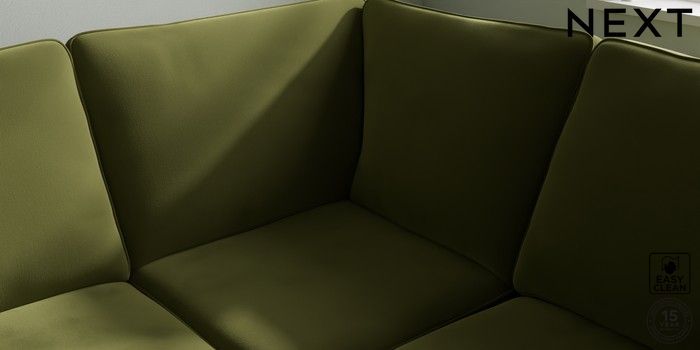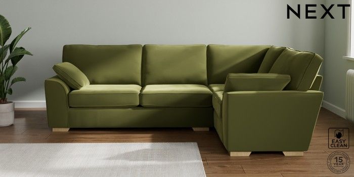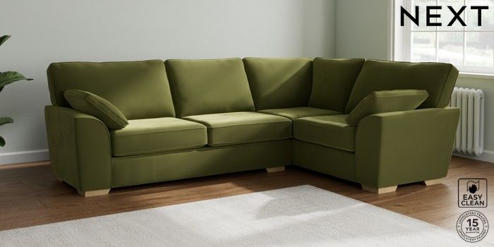 7.2.10 Stamford Large Corner Sofa - Right Hand Plush Velvet Easy Clean Mid Olive Green Large Square Angle - Light | Made Click here to use our website with more accessibility support, for example screen readers