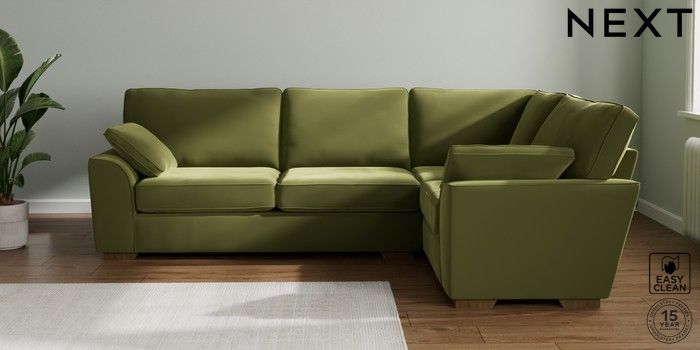 7.2.10 Stamford Large Corner Sofa - Right Hand Plush Velvet Easy Clean Mid Olive Green Large Square Angle - Mid | Made Click here to use our website with more accessibility support, for example screen readers