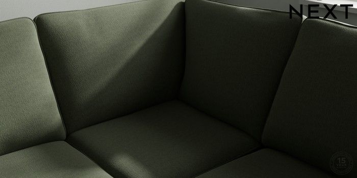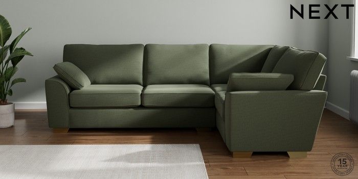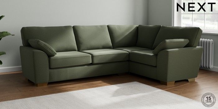 7.2.10 Stamford Large Corner Sofa - Right Hand Relaxed Linen Look Dark Green Large Square Angle - Brushed Brass | Made Click here to use our website with more accessibility support, for example screen readers