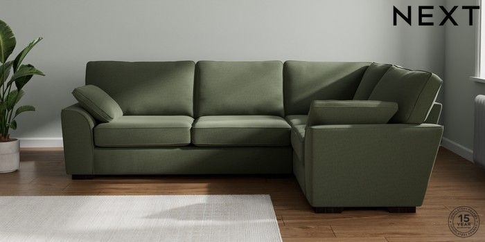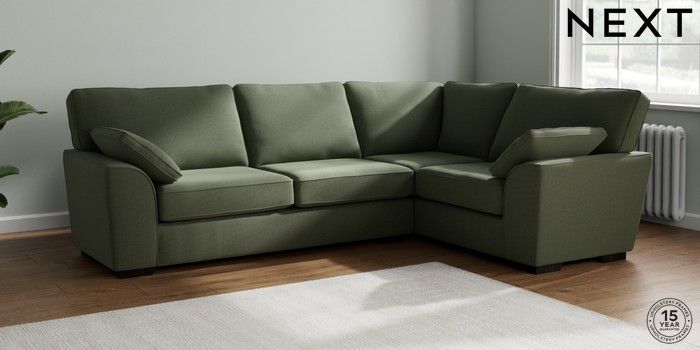 7.2.10 Stamford Large Corner Sofa - Right Hand Relaxed Linen Look Dark Green Large Square Angle - Dark | Made Click here to use our website with more accessibility support, for example screen readers