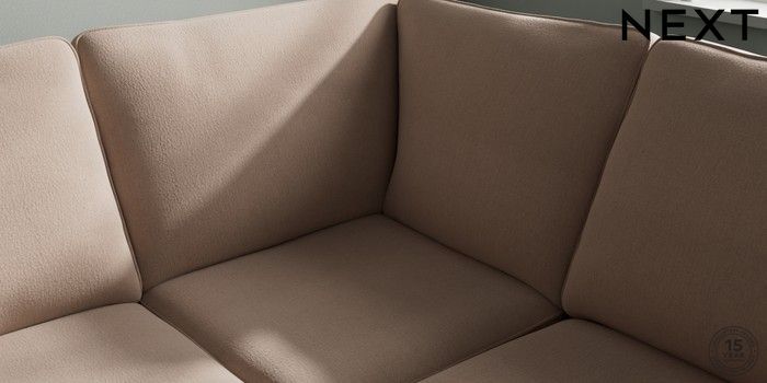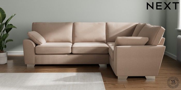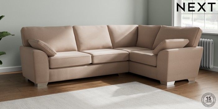 7.2.10 Stamford Large Corner Sofa - Right Hand Relaxed Linen Look Mid Natural Large Square Angle - Chrome Metal | Made Click here to use our website with more accessibility support, for example screen readers