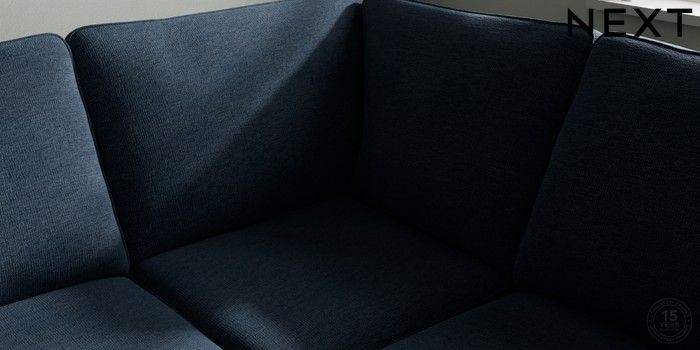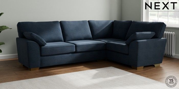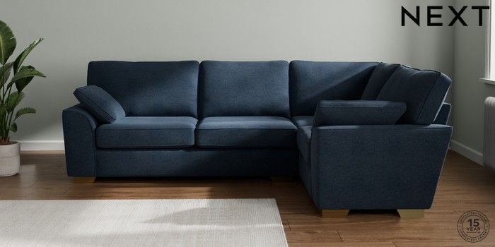 7.2.10 Stamford Large Corner Sofa - Right Hand Ripple Chenille Dark Blue Large Square Angle - Brushed Brass | Made Click here to use our website with more accessibility support, for example screen readers