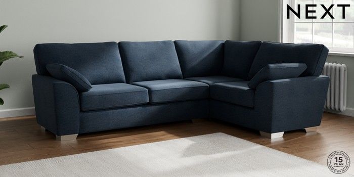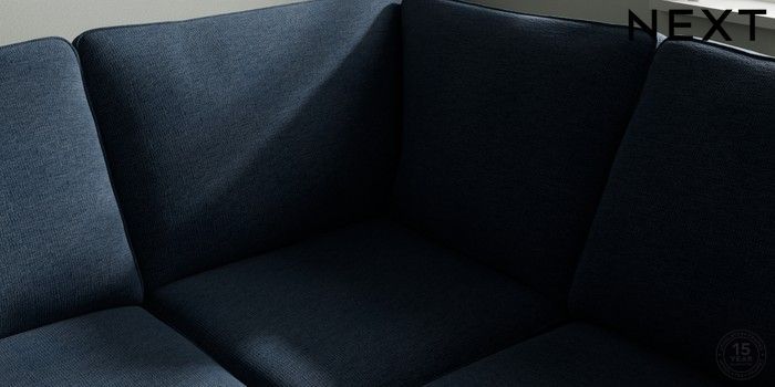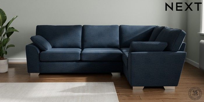 7.2.10 Stamford Large Corner Sofa - Right Hand Ripple Chenille Dark Blue Large Square Angle - Chrome Metal | Made Click here to use our website with more accessibility support, for example screen readers
