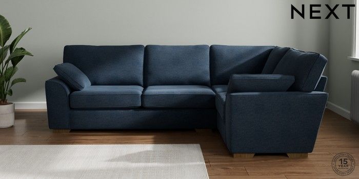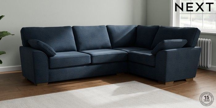7.2.10 Stamford Large Corner Sofa - Right Hand Ripple Chenille Dark Blue Large Square Angle - Mid | Made Click here to use our website with more accessibility support, for example screen readers