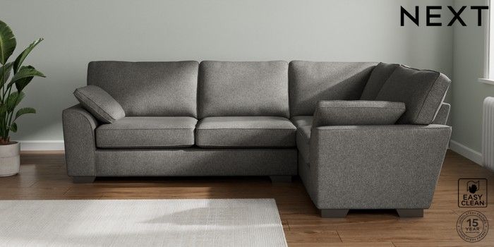 7.2.10 Stamford Large Corner Sofa - Right Hand Tweedy Blend Easy Clean Dark Grey Large Square Angle - Gunmetal | Made Click here to use our website with more accessibility support, for example screen readers