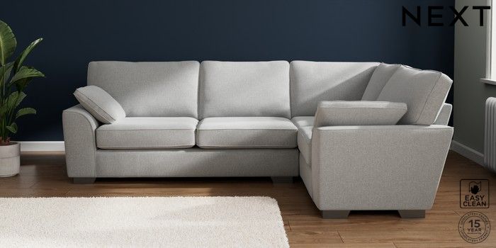 7.2.10 Stamford Large Corner Sofa - Right Hand Tweedy Blend Easy Clean Light Silver Grey Large Square Angle - Gunmetal | Made Click here to use our website with more accessibility support, for example screen readers