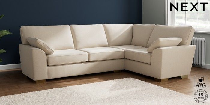 7.2.10 Stamford Large Corner Sofa - Right Hand Tweedy Blend Easy Clean Oyster Large Square Angle - Brushed Brass | Made Click here to use our website with more accessibility support, for example screen readers