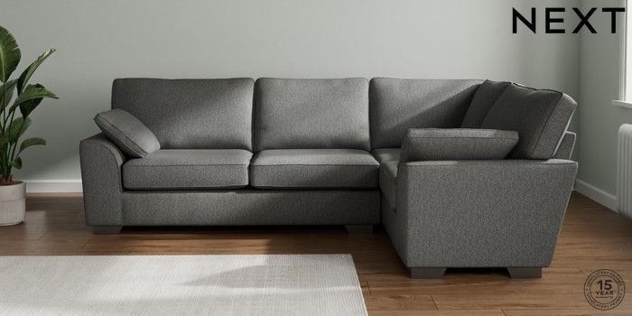 7.2.10 Stamford Large Corner Sofa - Right Hand Tweedy Chenille Dark Grey Large Square Angle - Gunmetal | Made Click here to use our website with more accessibility support, for example screen readers