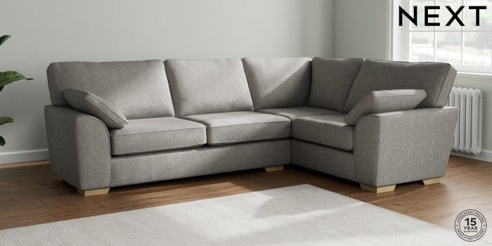 7.2.10 Stamford Large Corner Sofa - Right Hand Tweedy Chenille Mid Grey Large Square Angle - Light | Made Click here to use our website with more accessibility support, for example screen readers