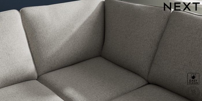 7.2.10 Stamford Large Corner Sofa - Right Hand Woven Chenille Easy Clean Light Grey Large Square Angle - Brushed Brass | Made Click here to use our website with more accessibility support, for example screen readers