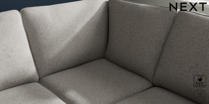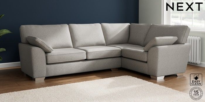 7.2.10 Stamford Large Corner Sofa - Right Hand Woven Chenille Easy Clean Light Grey Large Square Angle - Chrome Metal | Made Click here to use our website with more accessibility support, for example screen readers