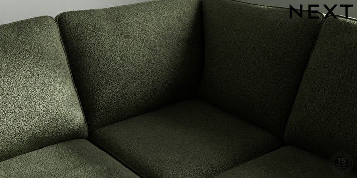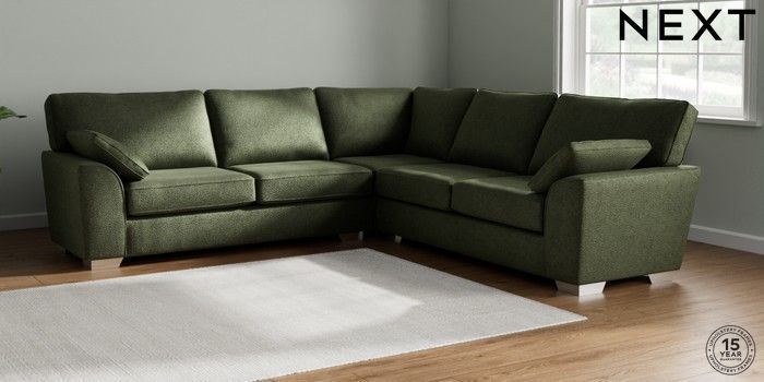 7.2.10 Stamford Large Corner Sofa - Universal Boucle Chenille Dark Moss Green Large Square Angle - Chrome Metal | Made Click here to use our website with more accessibility support, for example screen readers