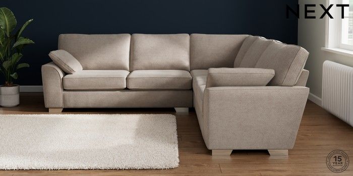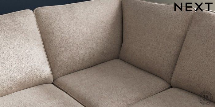 7.2.10 Stamford Large Corner Sofa - Universal Boucle Chenille Light Natural Large Square Angle - Chrome Metal | Made Click here to use our website with more accessibility support, for example screen readers