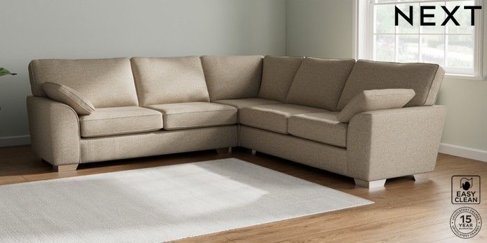 7.2.10 Stamford Large Corner Sofa - Universal Boucle Weave Easy Clean Dark Natural Large Square Angle - Chrome Metal | Made Click here to use our website with more accessibility support, for example screen readers