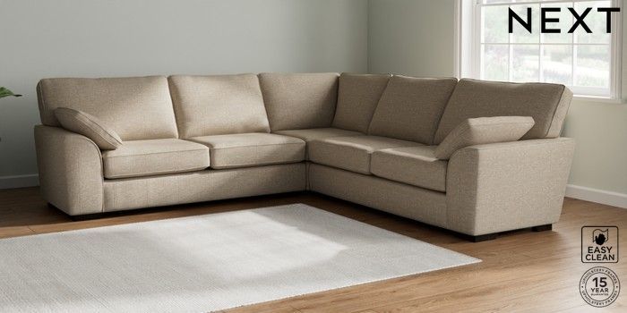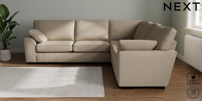 7.2.10 Stamford Large Corner Sofa - Universal Boucle Weave Easy Clean Dark Natural Large Square Angle - Dark | Made Click here to use our website with more accessibility support, for example screen readers