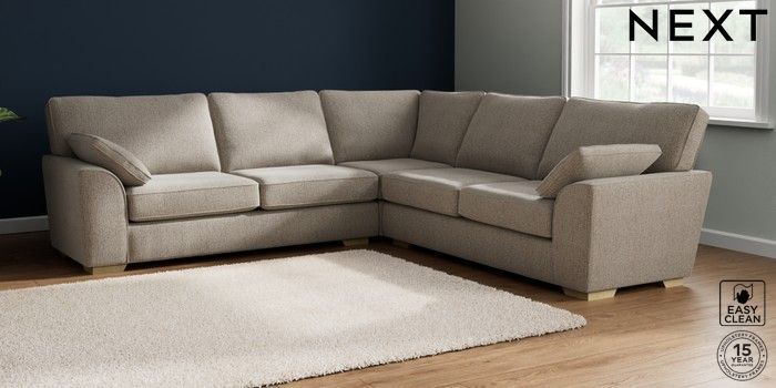 7.2.10 Stamford Large Corner Sofa - Universal Chunky Boucle Easy Clean Dove Large Square Angle - Light | Made Click here to use our website with more accessibility support, for example screen readers