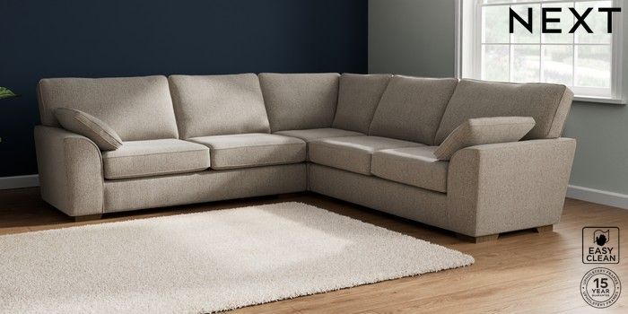 7.2.10 Stamford Large Corner Sofa - Universal Chunky Boucle Easy Clean Dove Large Square Angle - Mid | Made Click here to use our website with more accessibility support, for example screen readers