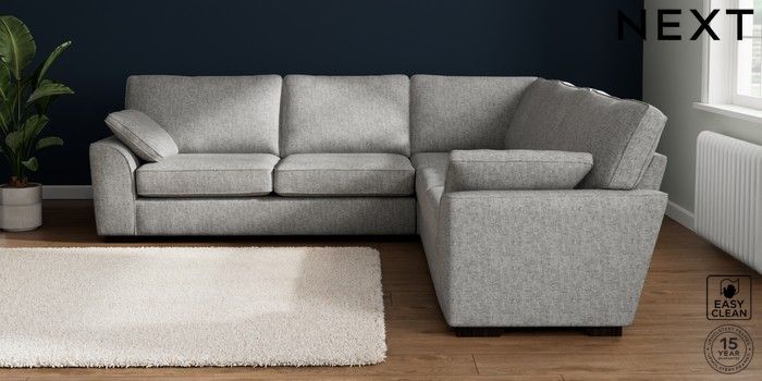 7.2.10 Stamford Large Corner Sofa - Universal Chunky Boucle Easy Clean Light Grey Large Square Angle - Dark | Made Click here to use our website with more accessibility support, for example screen readers