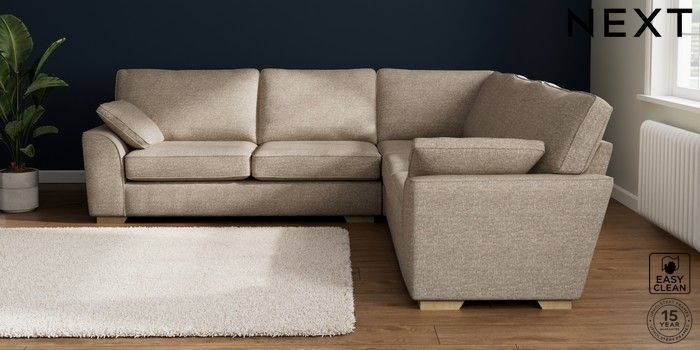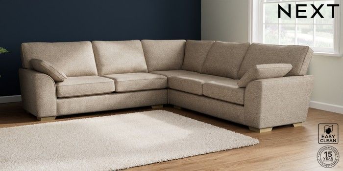 7.2.10 Stamford Large Corner Sofa - Universal Chunky Boucle Easy Clean Mid Natural Large Square Angle - Light | Made Click here to use our website with more accessibility support, for example screen readers