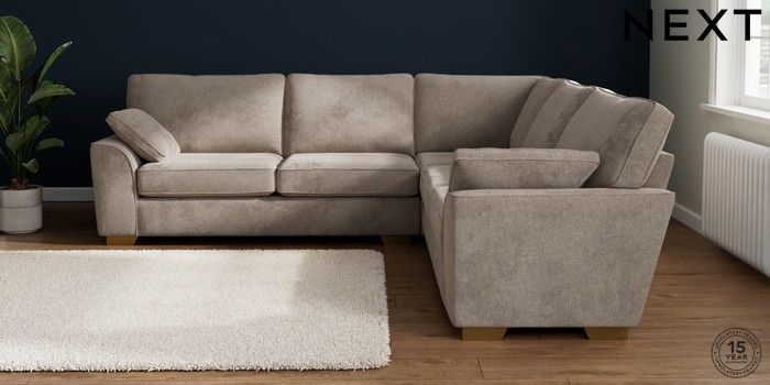 7.2.10 Stamford Large Corner Sofa - Universal Chunky Chenille Light Dove Large Square Angle - Brushed Brass | Made Click here to use our website with more accessibility support, for example screen readers