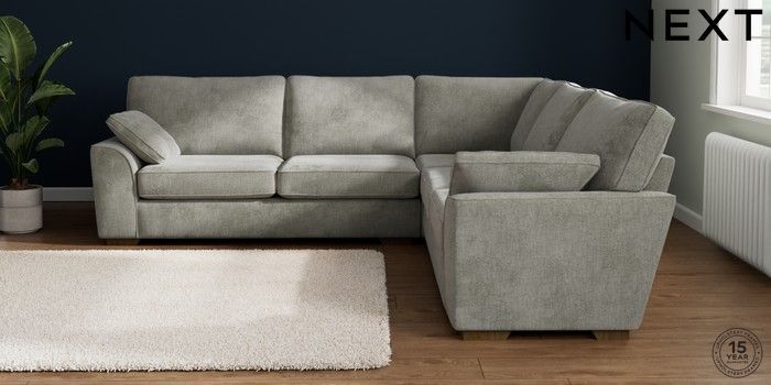 7.2.10 Stamford Large Corner Sofa - Universal Chunky Chenille Light Grey Large Square Angle - Mid | Made Click here to use our website with more accessibility support, for example screen readers