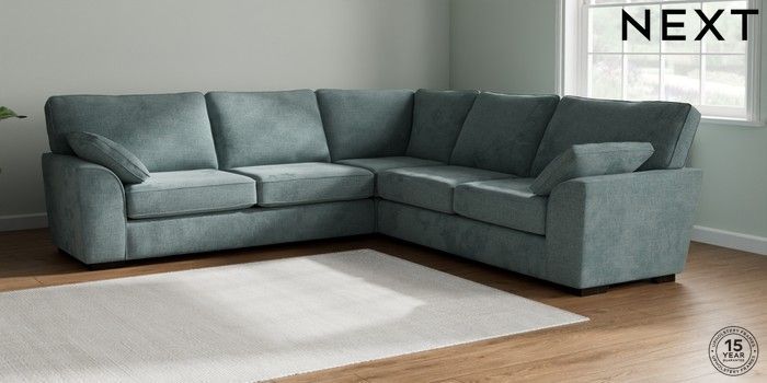 7.2.10 Stamford Large Corner Sofa - Universal Chunky Chenille Light Teal Green Large Square Angle - Dark | Made Click here to use our website with more accessibility support, for example screen readers
