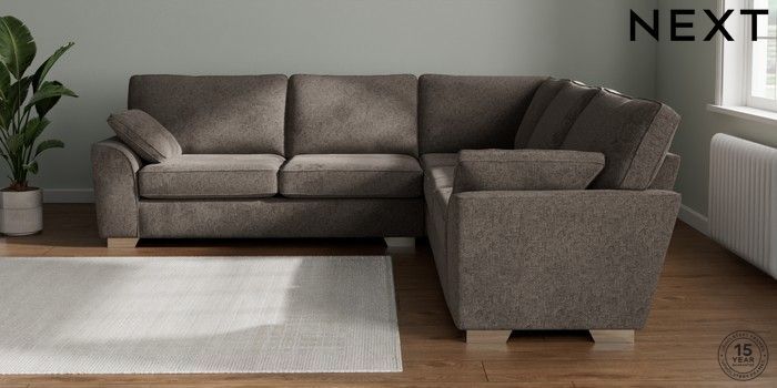 7.2.10 Stamford Large Corner Sofa - Universal Chunky Chenille Mink Brown Large Square Angle - Chrome Metal | Made Click here to use our website with more accessibility support, for example screen readers