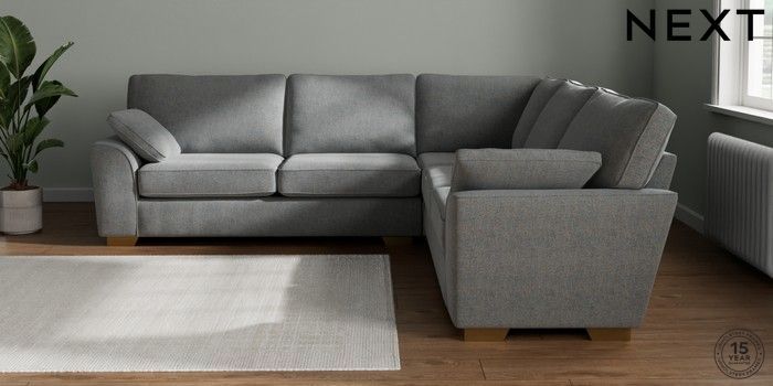 7.2.10 Stamford Large Corner Sofa - Universal Chunky Marl Mid Grey Large Square Angle - Brushed Brass | Made Click here to use our website with more accessibility support, for example screen readers