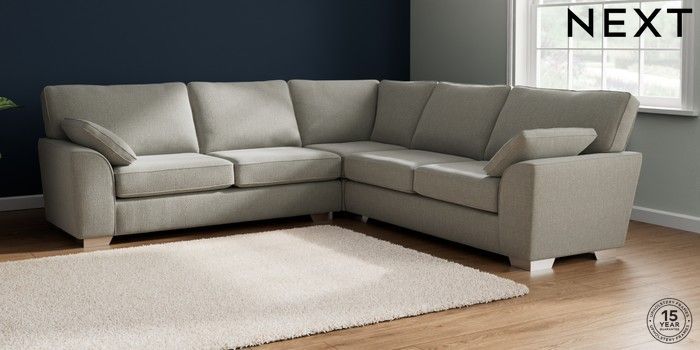7.2.10 Stamford Large Corner Sofa - Universal Chunky Texture Dove Large Square Angle - Chrome Metal | Made Click here to use our website with more accessibility support, for example screen readers
