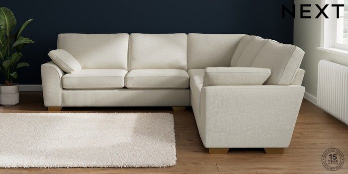7.2.10 Stamford Large Corner Sofa - Universal Chunky Texture Oyster Large Square Angle - Brushed Brass | Made Click here to use our website with more accessibility support, for example screen readers