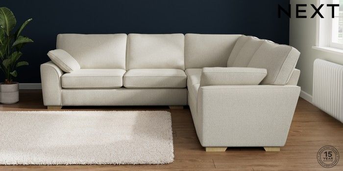 7.2.10 Stamford Large Corner Sofa - Universal Chunky Texture Oyster Large Square Angle - Light | Made Click here to use our website with more accessibility support, for example screen readers
