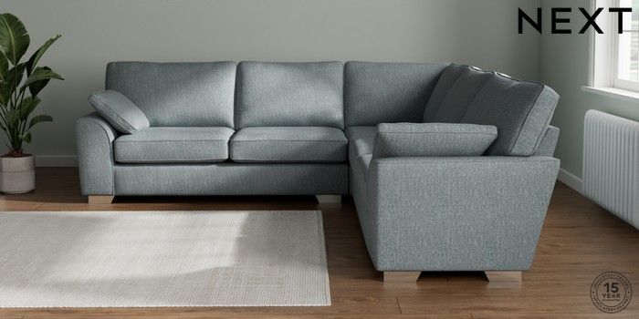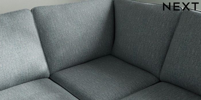 7.2.10 Stamford Large Corner Sofa - Universal Chunky Weave Mid Blue Large Square Angle - Chrome Metal | Made Click here to use our website with more accessibility support, for example screen readers