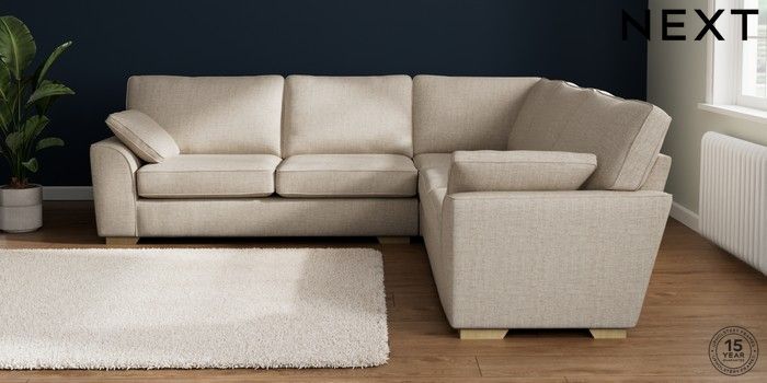 7.2.10 Stamford Large Corner Sofa - Universal Chunky Weave Mid Natural Large Square Angle - Light | Made Click here to use our website with more accessibility support, for example screen readers