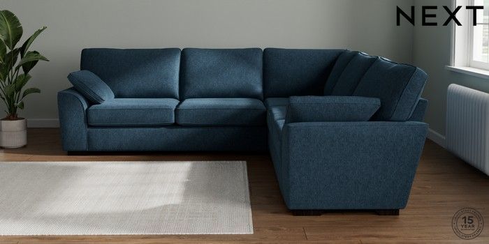 7.2.10 Stamford Large Corner Sofa - Universal Cotswold Chenille Dark Blue Large Square Angle - Dark | Made Click here to use our website with more accessibility support, for example screen readers