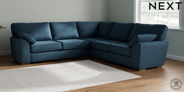 7.2.10 Stamford Large Corner Sofa - Universal Cotswold Chenille Dark Blue Large Square Angle - Mid | Made Click here to use our website with more accessibility support, for example screen readers