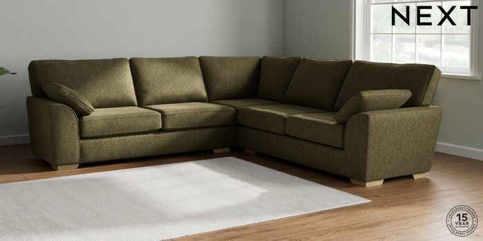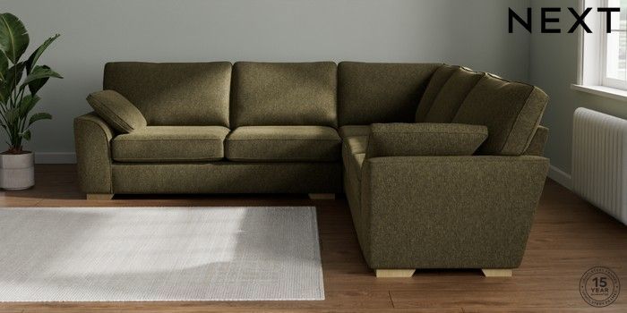7.2.10 Stamford Large Corner Sofa - Universal Cotswold Chenille Dark Green Large Square Angle - Light | Made Click here to use our website with more accessibility support, for example screen readers