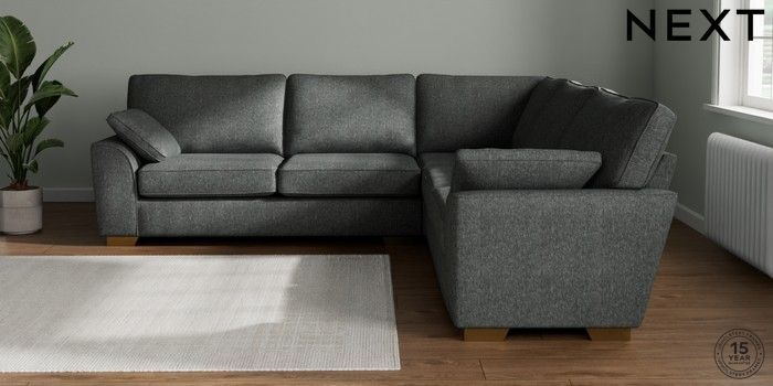 7.2.10 Stamford Large Corner Sofa - Universal Cotswold Chenille Dark Grey Large Square Angle - Brushed Brass | Made Click here to use our website with more accessibility support, for example screen readers
