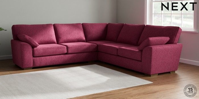 7.2.10 Stamford Large Corner Sofa - Universal Cotswold Chenille Dark Raspberry Pink Large Square Angle - Mid | Made Click here to use our website with more accessibility support, for example screen readers